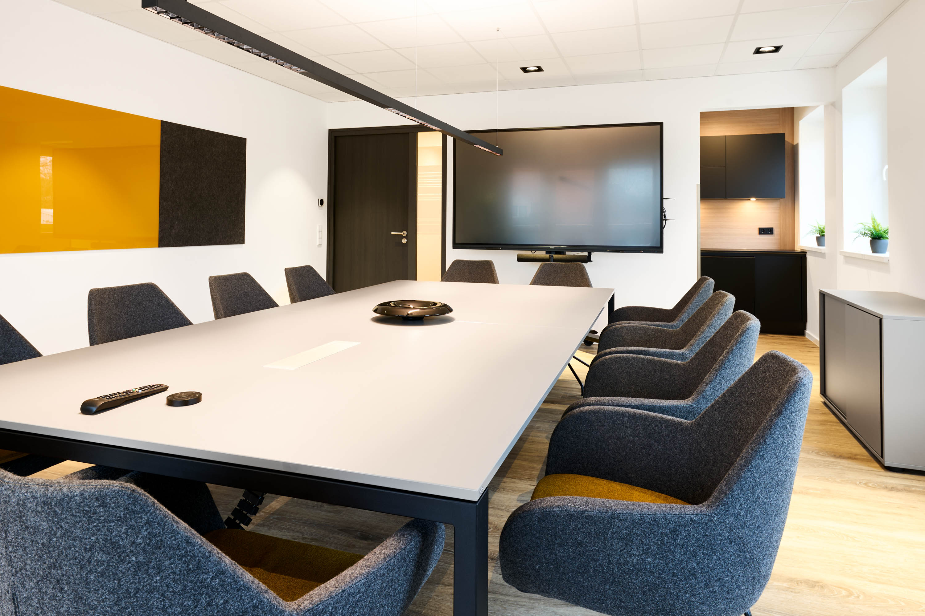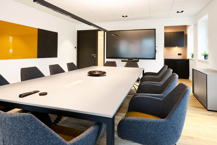 - Accessoires und Details: Passgenaue Teppiche, farbige Glastafeln und Akustikelemente sorgen für eine harmonische Atmosphäre und optimale Akustik.