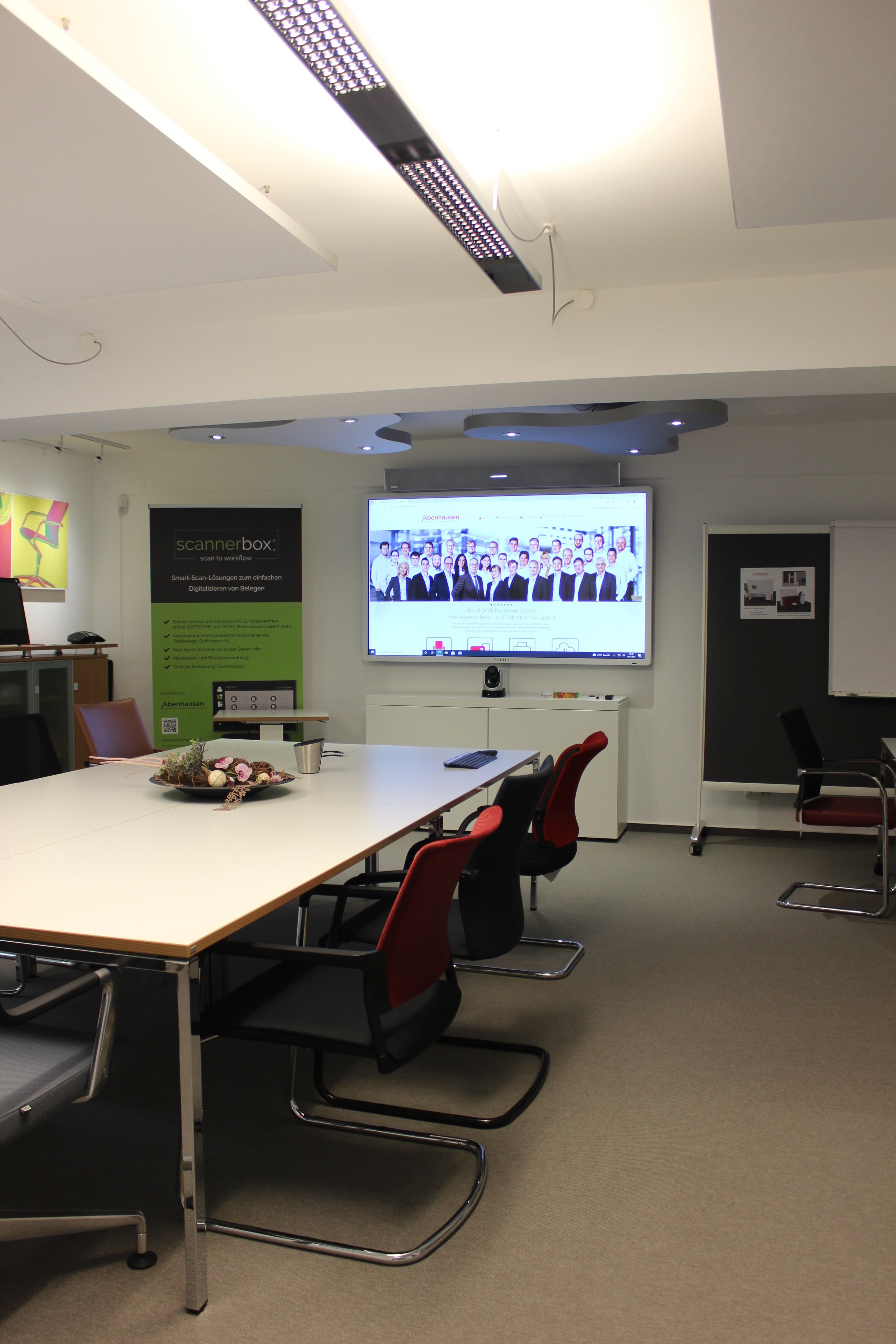 Diesem Trend folgend nutzen und präsentieren wir auch in unseren Besprechungsräumen Technik für Videokonferenzen.